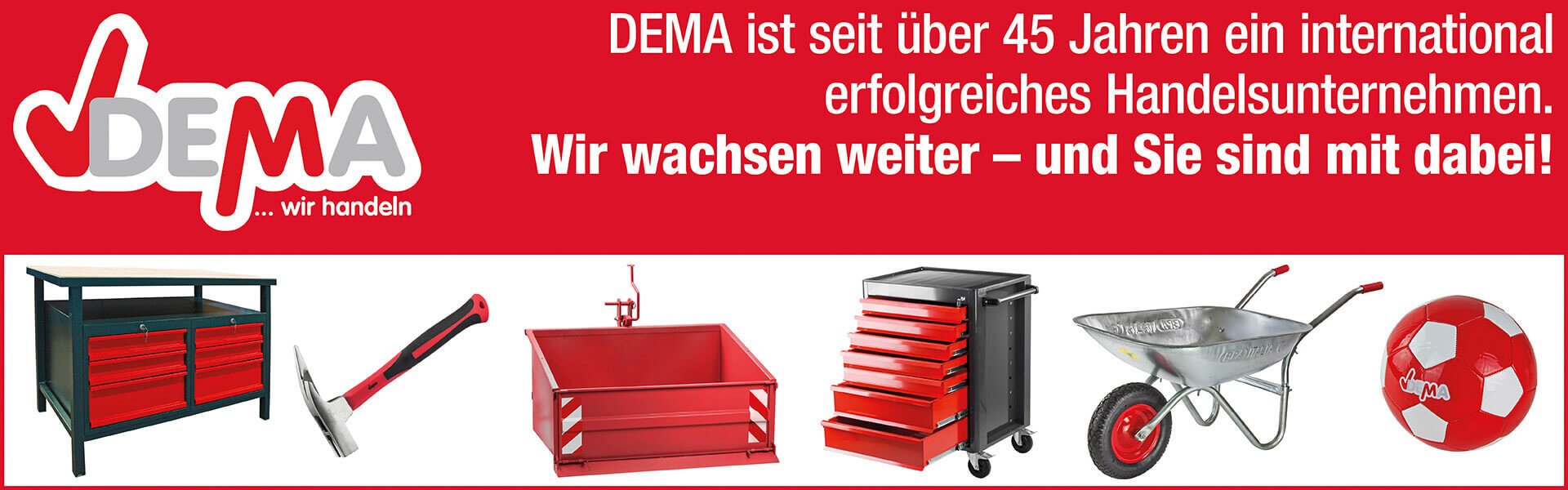 DEMA ist seit über 45 Jahren ein international erfolgreiches Handelsunternehmen. Beheimatet ist DEMA unweit des Grundungsort der Unternehmensgruppe in Untermünkheim-Übrighausen direkt an der B19 unweit der Autobahn 6. Neben mehreren Ländervetretungen innerhalb Europa, ist Sie Teil der Stabilo-Fachmarkt Gruppe und betriebt Lagerlogistik an sieben Standorten in Deutschland.